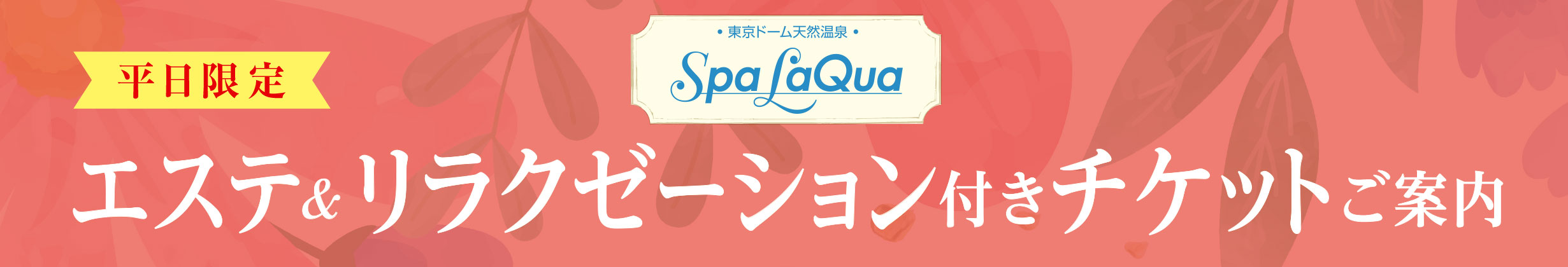 - ※入館制限を実施させていただく場合がございますが、本チケットでエステ&リラクゼーションを事前予約されているお客様はその旨、スタッフにお申し付けください。(お時間に余裕を持ってご来館ください)