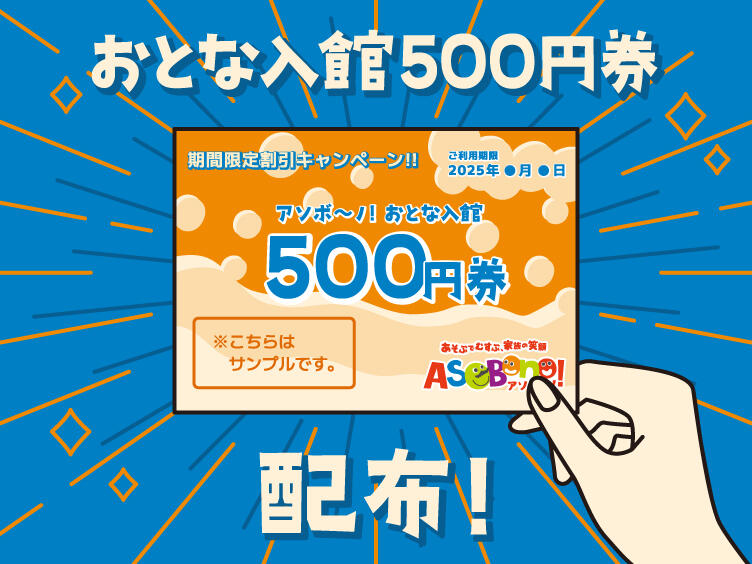 割引券は、期間中にアソボ~ノ!をご利用いただいた方にお渡しいたします。