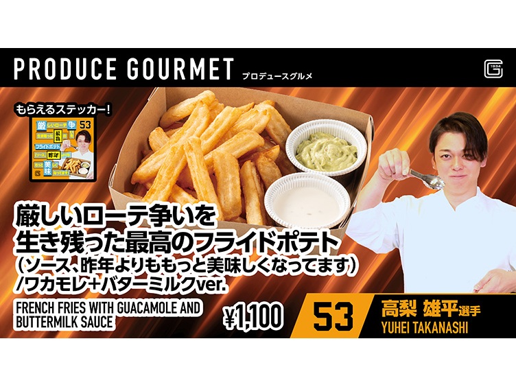 - ※選手・監督プロデュースグルメは、商品1点ご購入につき、限定ステッカー1枚をプレゼント。