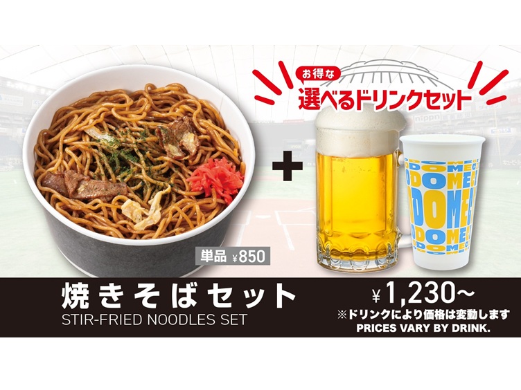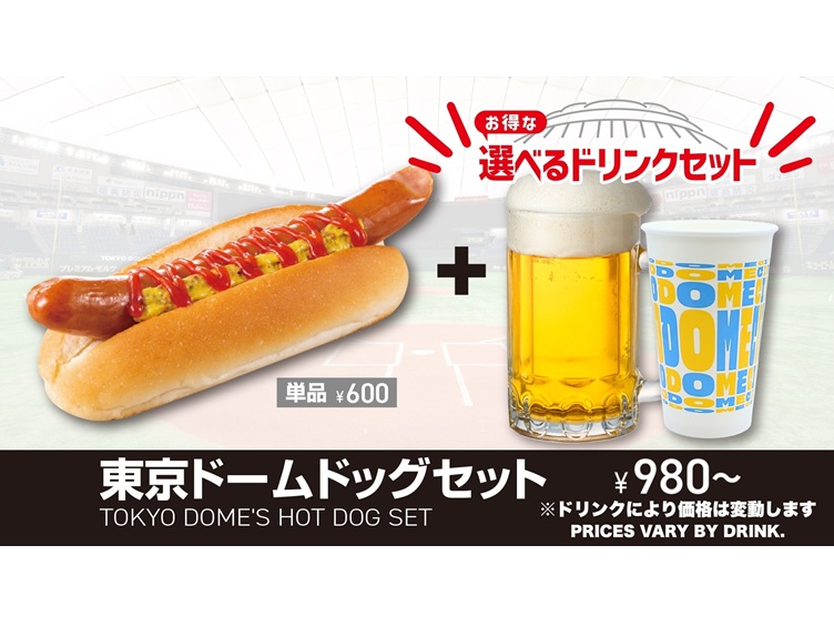 ファンの皆様に愛され続けている、東京ドームドッグ!お好きなソフトドリンク・アルコールとセットになった、お得なメニューです!