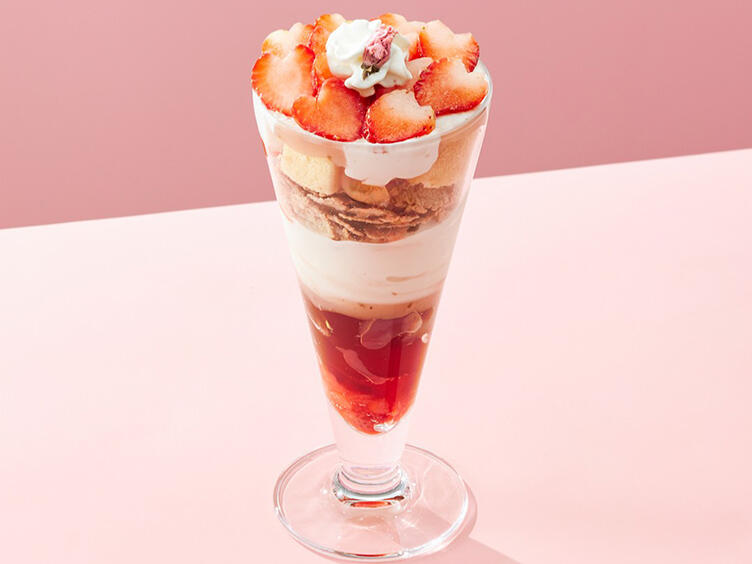 フレッシュな苺と桜アイス、桜あんを使い春らしく、お花見気分も味わっていただける一品に。