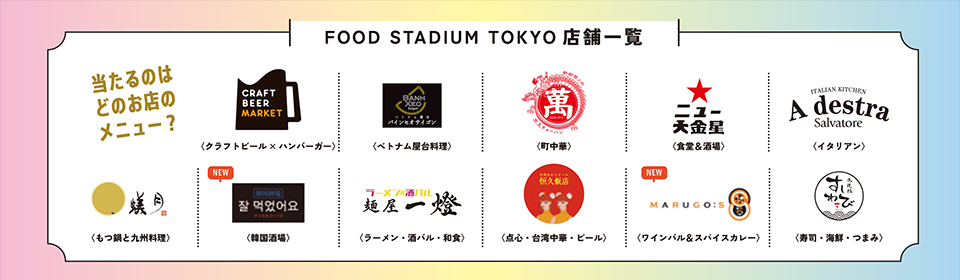 その日から使えるFOOD STADIUM TOKYO各店舗の定番メニューチケットが“必ず”当たります!