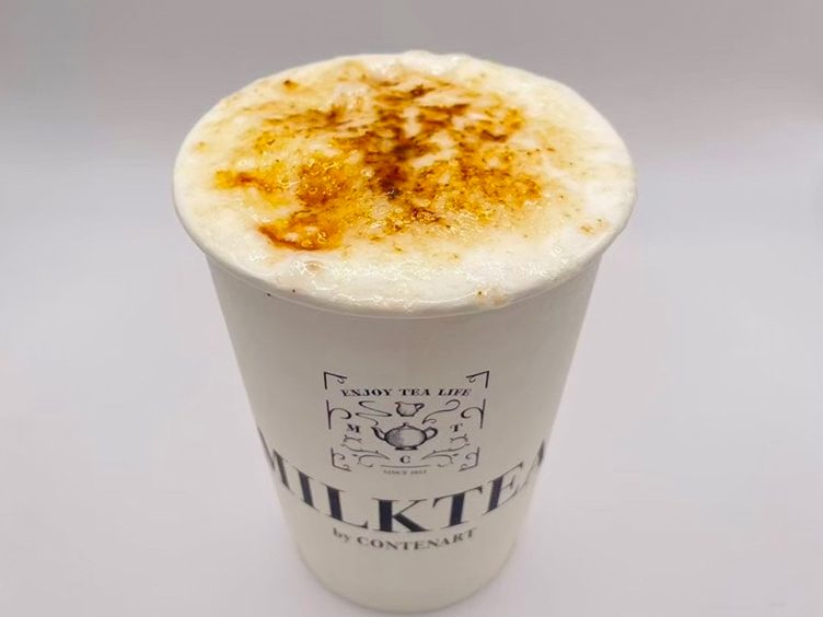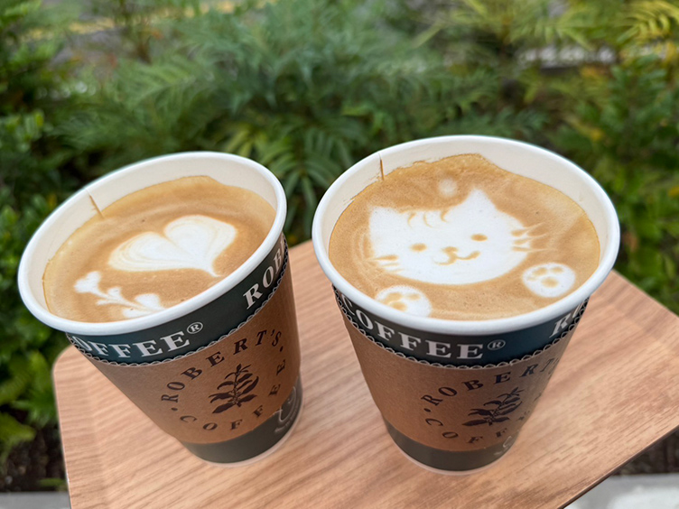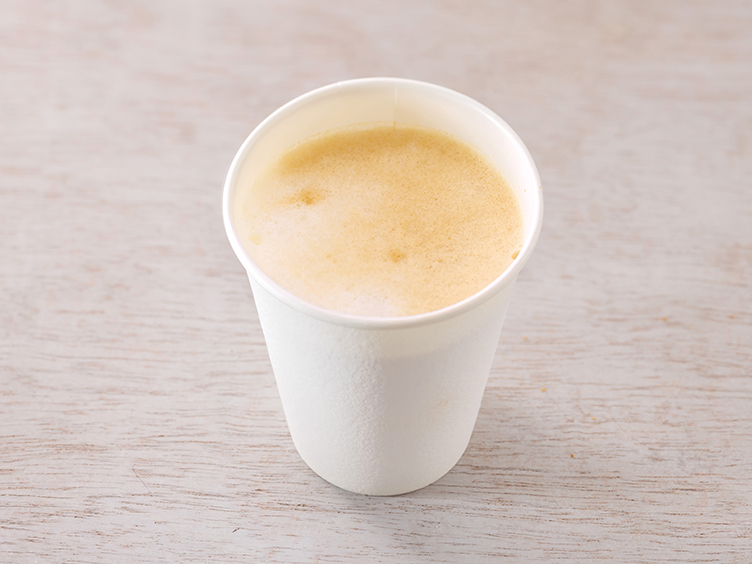 ①エスプレッソにきめ細やかに泡立てたスチームミルクを注いだ、口当たりの良いコーヒーです。