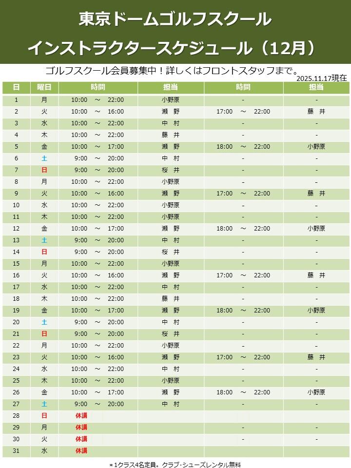トピックス ゴルフ ゴルフスクール 2025年12月 インストラクタースケジュール 2025年11月17日(月) 屋内型スポーツ施設 スポドリ! スポドリ!とは ボルダリング バッティング ゴルフ 野球塾 オンライン野球塾 レンタルフィールド 営業時間・利用料金 ご利用案内 よくあるご質問 アクセス イベント一覧 ご利用上の注意 トピックス 屋内型スポーツ施設 スポドリ! 公式SNS facebook instagram 関連リンク TDポイントカード 東京ドーム ローラースケートアリーナ 東京ドーム天然温泉 スパ ラクーア アルバイト情報