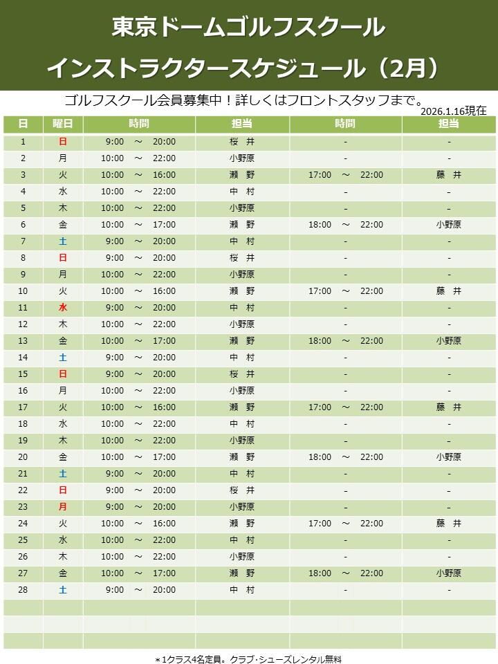 トピックス ゴルフ ゴルフスクール 2026年2月 インストラクタースケジュール 2026年01月16日(金) 屋内型スポーツ施設 スポドリ! スポドリ!とは ボルダリング バッティング ゴルフ 野球塾 オンライン野球塾 レンタルフィールド 営業時間・利用料金 ご利用案内 よくあるご質問 アクセス イベント一覧 ご利用上の注意 トピックス 屋内型スポーツ施設 スポドリ! 公式SNS facebook instagram 関連リンク TDポイントカード 東京ドーム ローラースケートアリーナ 東京ドーム天然温泉 スパ ラクーア アルバイト情報