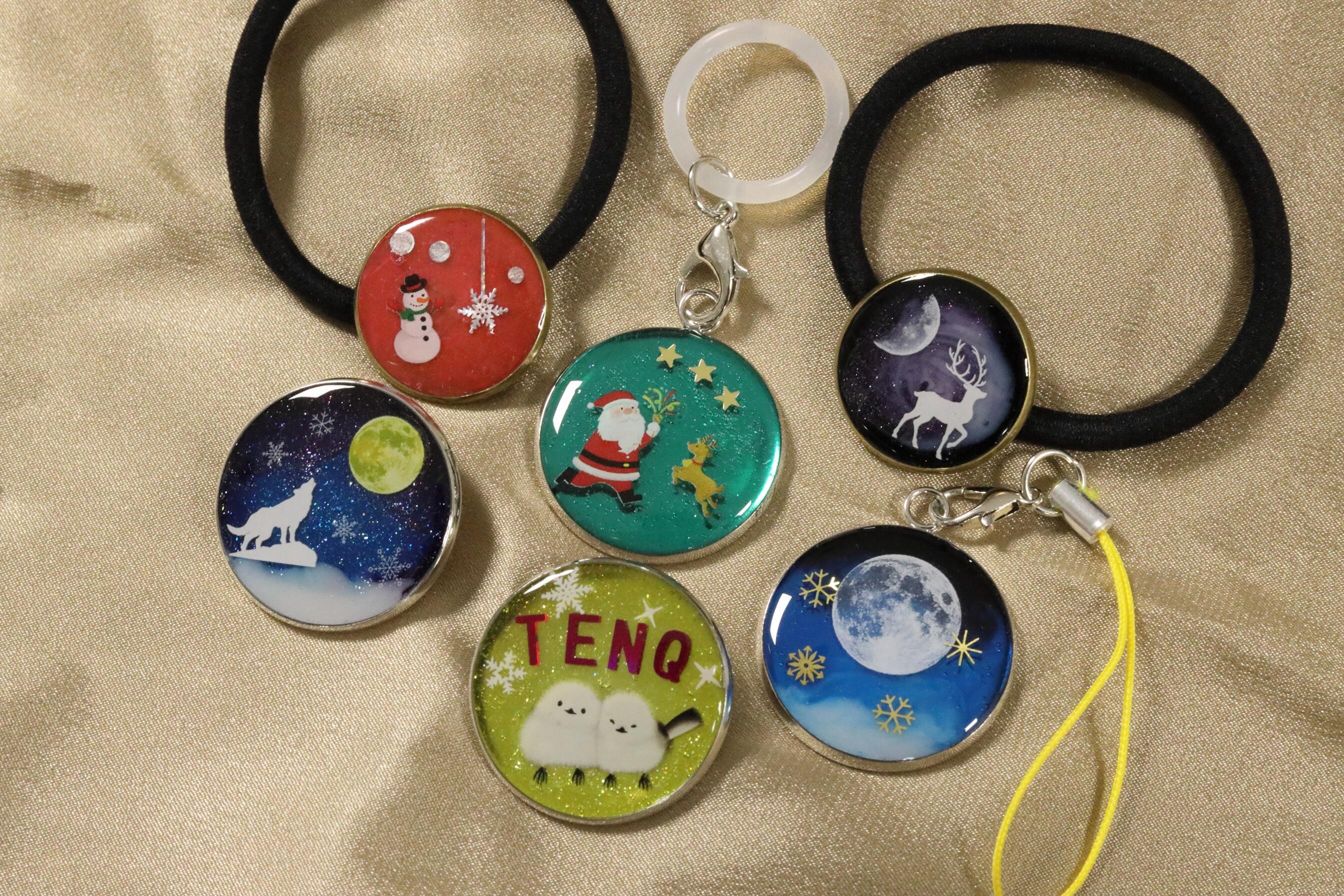 レジンを使ってオリジナルアクセサリーを作るワークショップを開催します。ストラップ・缶バッジ・ヘアピンの中から好きな型を選び、色付けからシール選びまで、自分だけのアクセサリーを作りましょう。