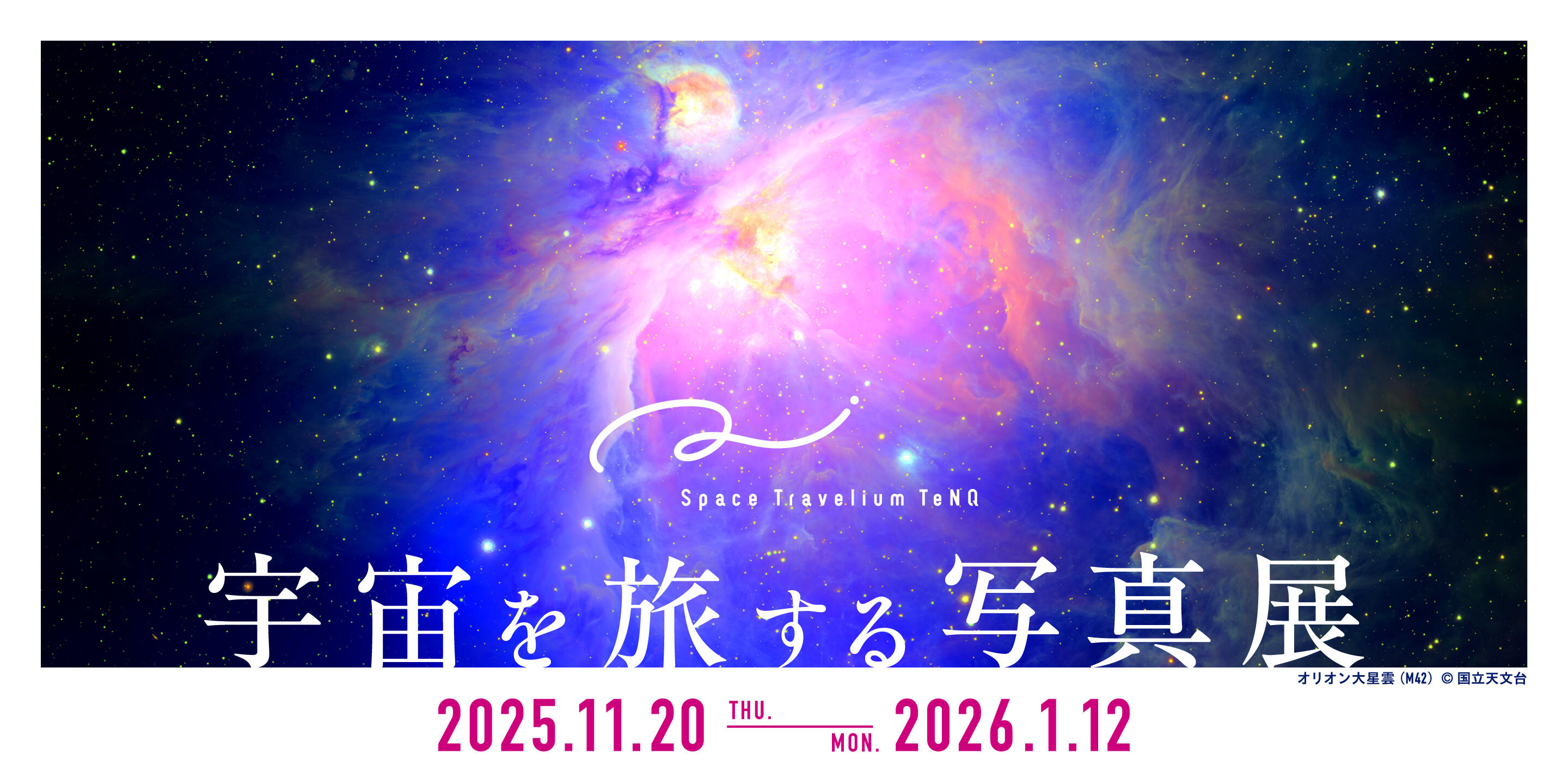 本展では、太陽系の天体から銀河系内の星雲や星団、そしてさらにその先にある無数の銀河や銀河団など、多様な天体の姿を美しい写真プリントでご覧いただきながら、Space Travelium TeNQならではの"宇宙を巡る旅"を体感いただけます。