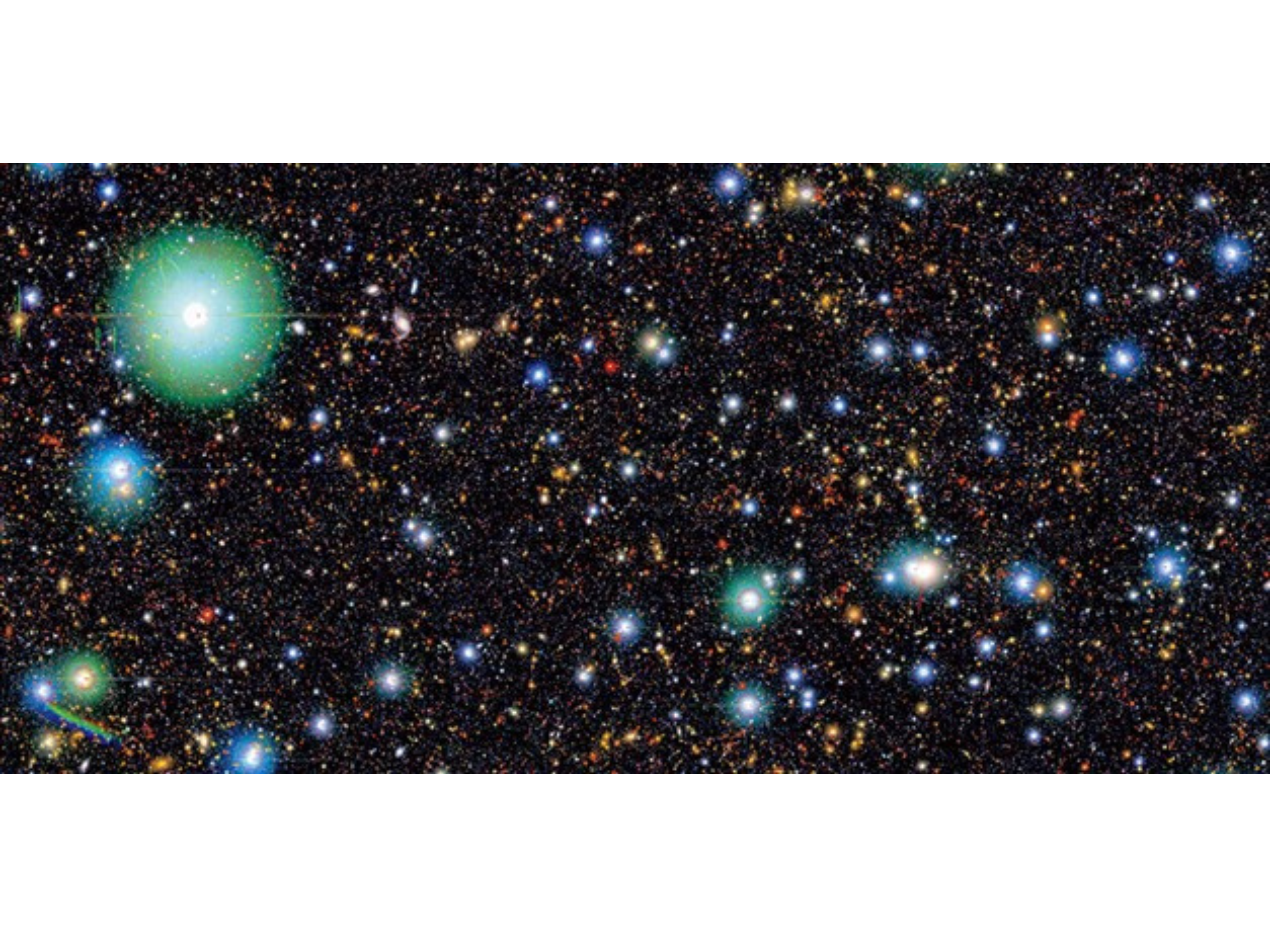 国立天文台ハワイ観測所編著により、今年3月に出版された国立天文台公式画像集『すばる望遠鏡 宇宙の神秘を探る』(クレヴィス刊)から、選りすぐりの画像を約30点展示します。壁いっぱいに広がる深宇宙領域の画像は、まるで宇宙の宝石箱のような美しさです。また、1.8メートル四方に大きくプリントされた、オリオン大星雲やアンドロメダ銀河は圧巻の迫力。さらに、銀河団が群れた「超銀河団」と一緒に記念写真を撮れるフォトスポットや、映像コーナーでは、すばる望遠鏡が探る宇宙の神秘に触れることができます。